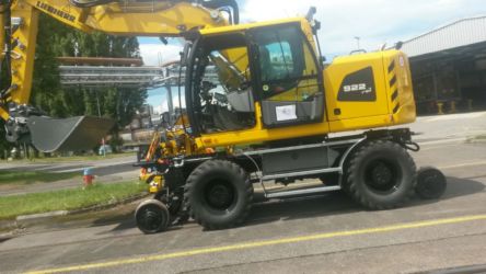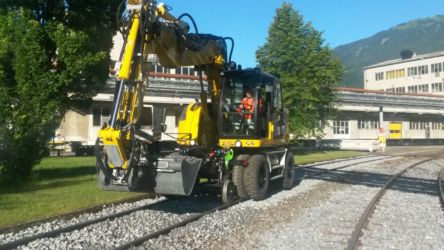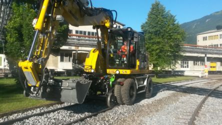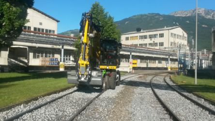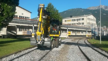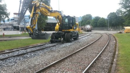 1er test de notre pelle rail-route Liebherr RR922 avec son module de bourrage Geismar MB8 AC sur le site chimique de Monthey CIMO.